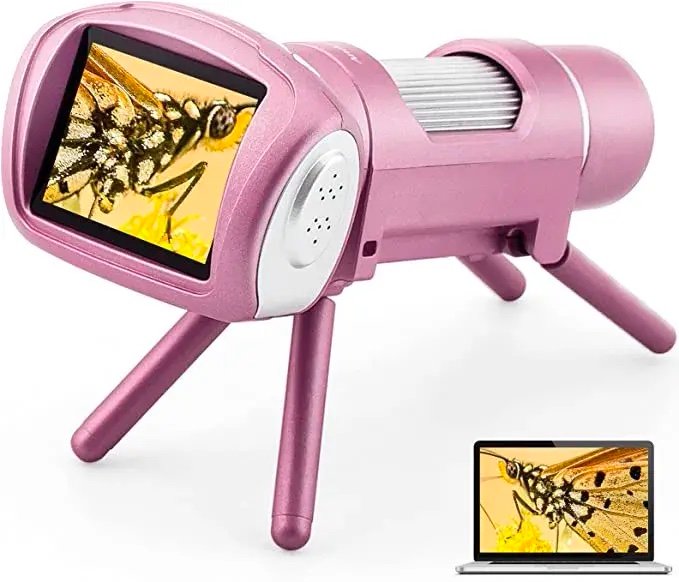 1080FHD picture quality, 300x more magnification with built-in 8 adjustable LED lights, which can provide enough magnification and meet kids? needs enough.